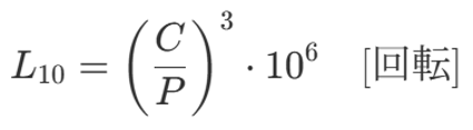 • 動定格荷重 (C): 信頼度90%で100万回転に達する荷重です。寿命計算式はボールねじと同様の以下を用います。