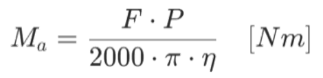 PWGは効率 η がボールねじよりも低くなる傾向があります(サイズにより50%~83%程度)。選定モーターのトルク計算には以下を使用します。