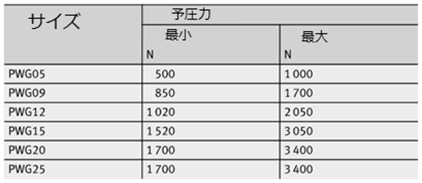 ◦ 推奨:カタログ上の許容最大荷重を超えないこと。PWGの変形は接触部のヘルツ応力に依存します。