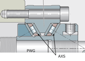 ・一般的なアンギュラー玉軸受(ACBB)の限界: 軸径に合わせた標準的なACBB(2個組合せ)では、PWGが叩き出す巨大な荷重に耐えられません。