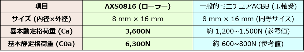 3. データが証明する優位性(AXS0816 vs. 一般軸受)