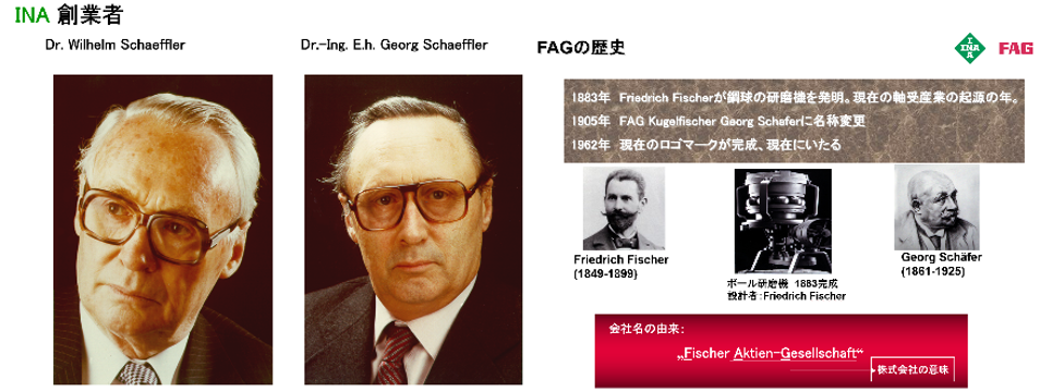 •FAGブランド: 1883年、フリードリッヒ・フィッシャーが「ボール研磨機」を発明し、真球に近い鋼球の大量生産を可能にしました。これが現在のベアリング産業の起源とされています 。