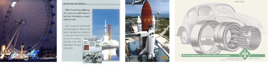 •ロンドン・アイ(大観覧車): 世界最大級の観覧車のスムーズで安全な回転をFAGの大型ベアリングが支えています 。