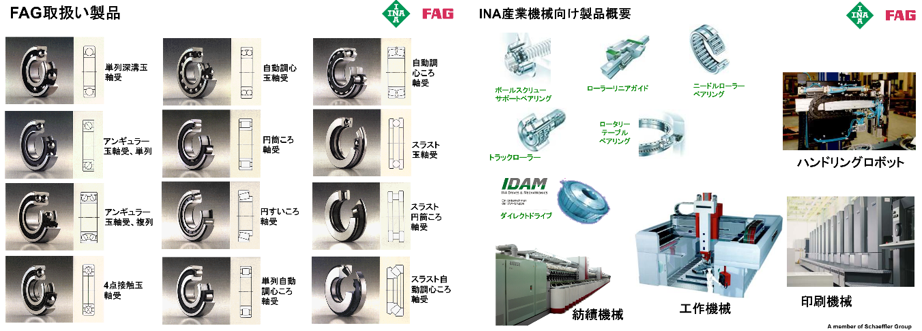 •INA製品: ニードルローラーベアリング、リニアガイドシステム、ダイレクトドライブモータなど、精密運動機器 。